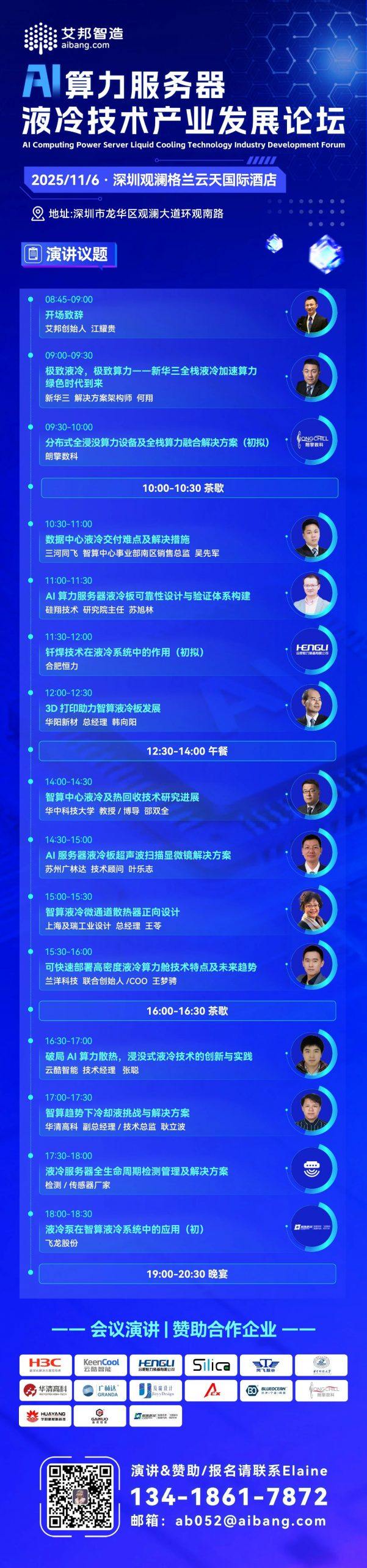 AI算力服务器液冷技术产业发展论坛(11月6日 深圳)