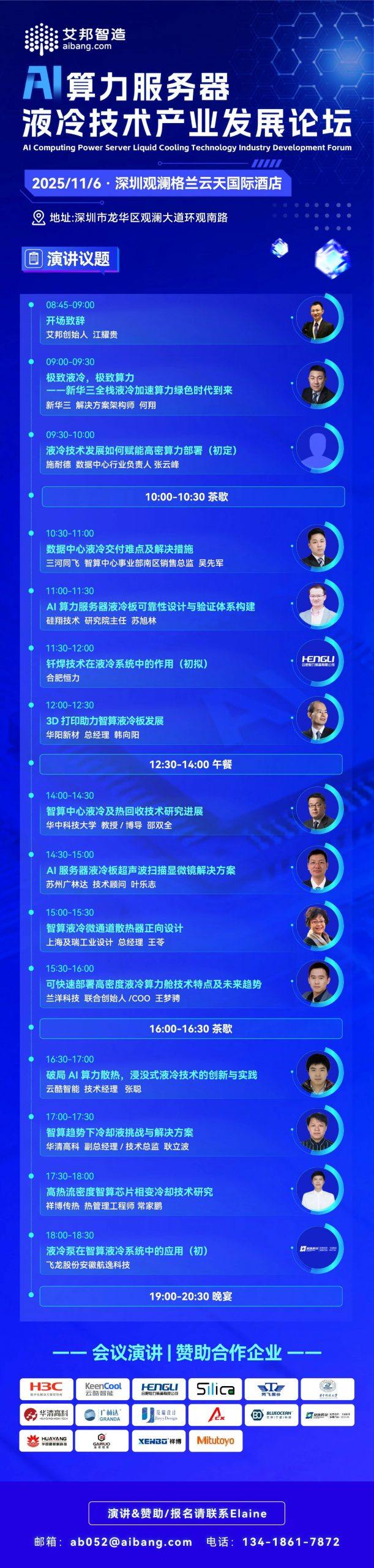 AI算力服务器液冷技术产业发展论坛(11月6日 深圳)