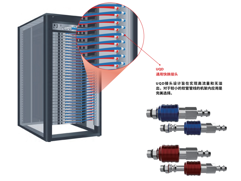 ● 盲插快接(UQDB):专门为数据中心直接液体冷却(DLC)应用设计,属于盲插式的一种。