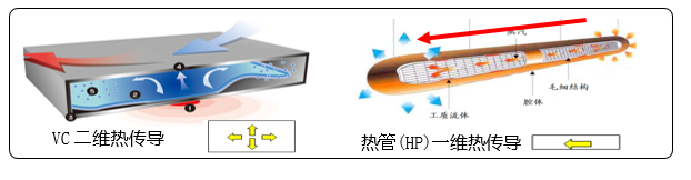4、散热原理:VC均热板利用液体的蒸发和凝结来传导热量,通过毛细管道的循环回流实现散热。热管则通过管道的导热作用来传递热量。