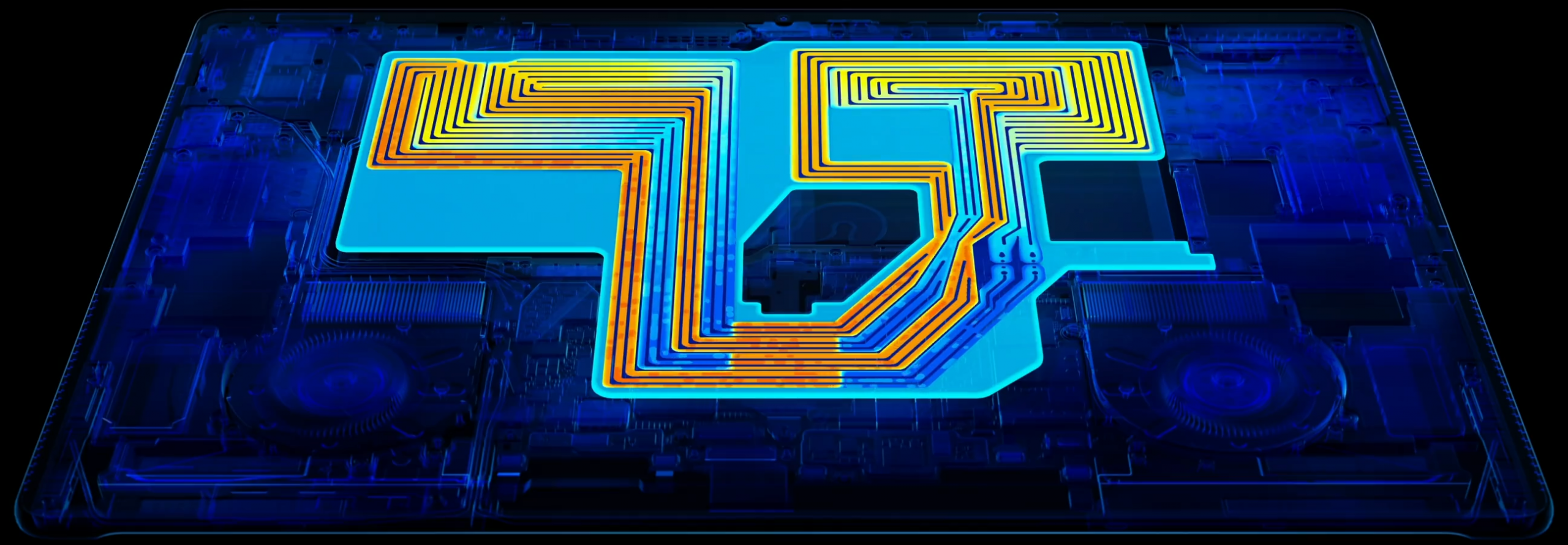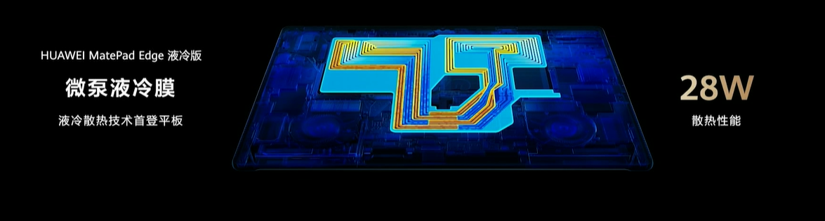 华为 MatePad Edge 通过超精密微泵与超薄液冷层的结合,冷却液在机身内进行快速的冷热循环,这一技术使得屏幕最热点温度降低了 2~3℃。