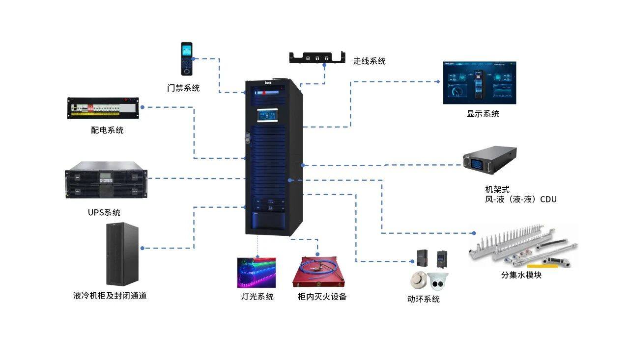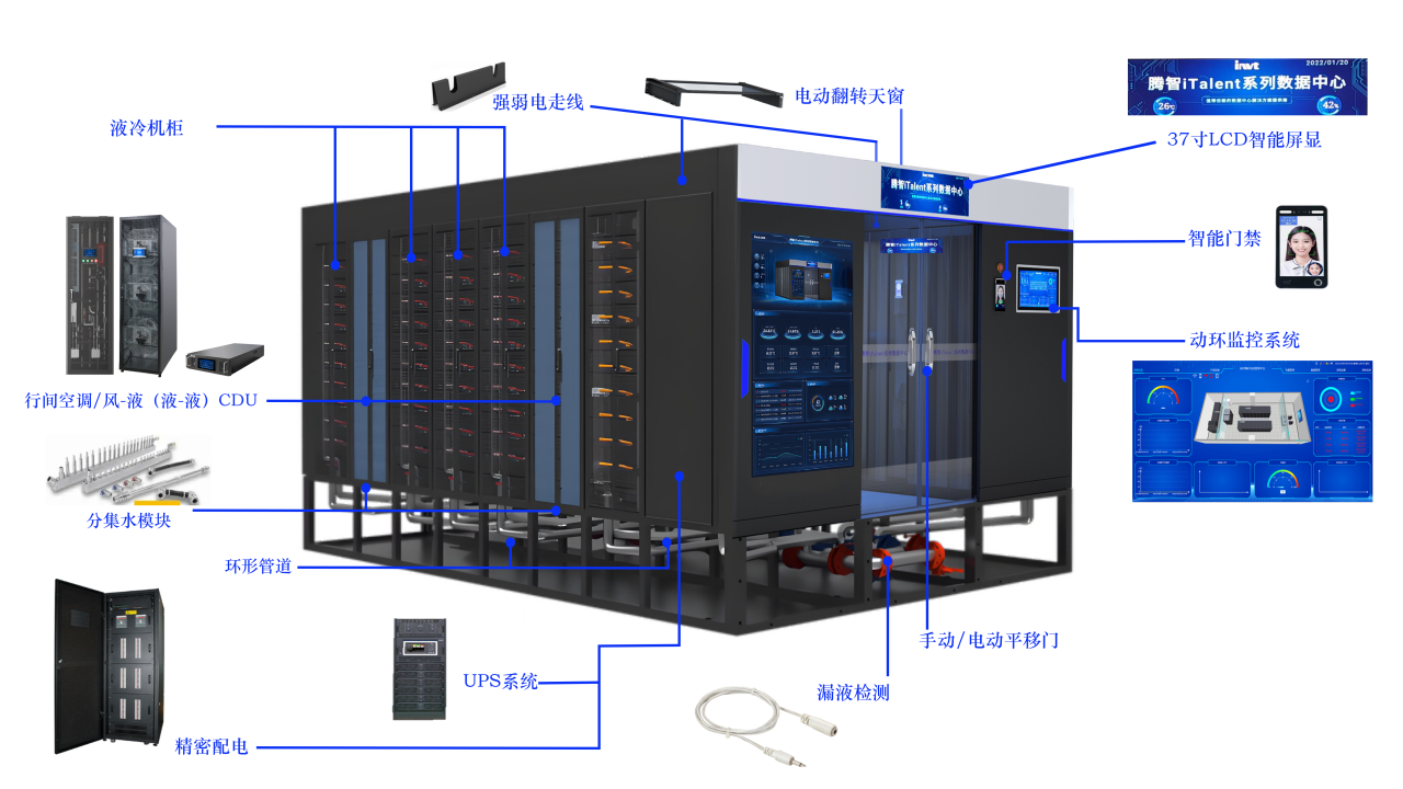 (1)核心方案:英威腾双排腾智一体化液冷微模块数据中心