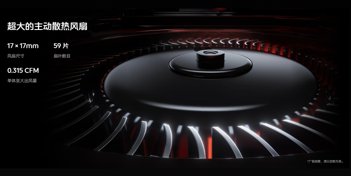 iQOO15 Ultra 独家定制的冰穹散热风扇,59片扇叶,直径达17mm,单体至大出风量0.315 CFM;风扇转速三挡智能调节,还有手动模式一键降温,噪音低至20dB高能输出更冷静。