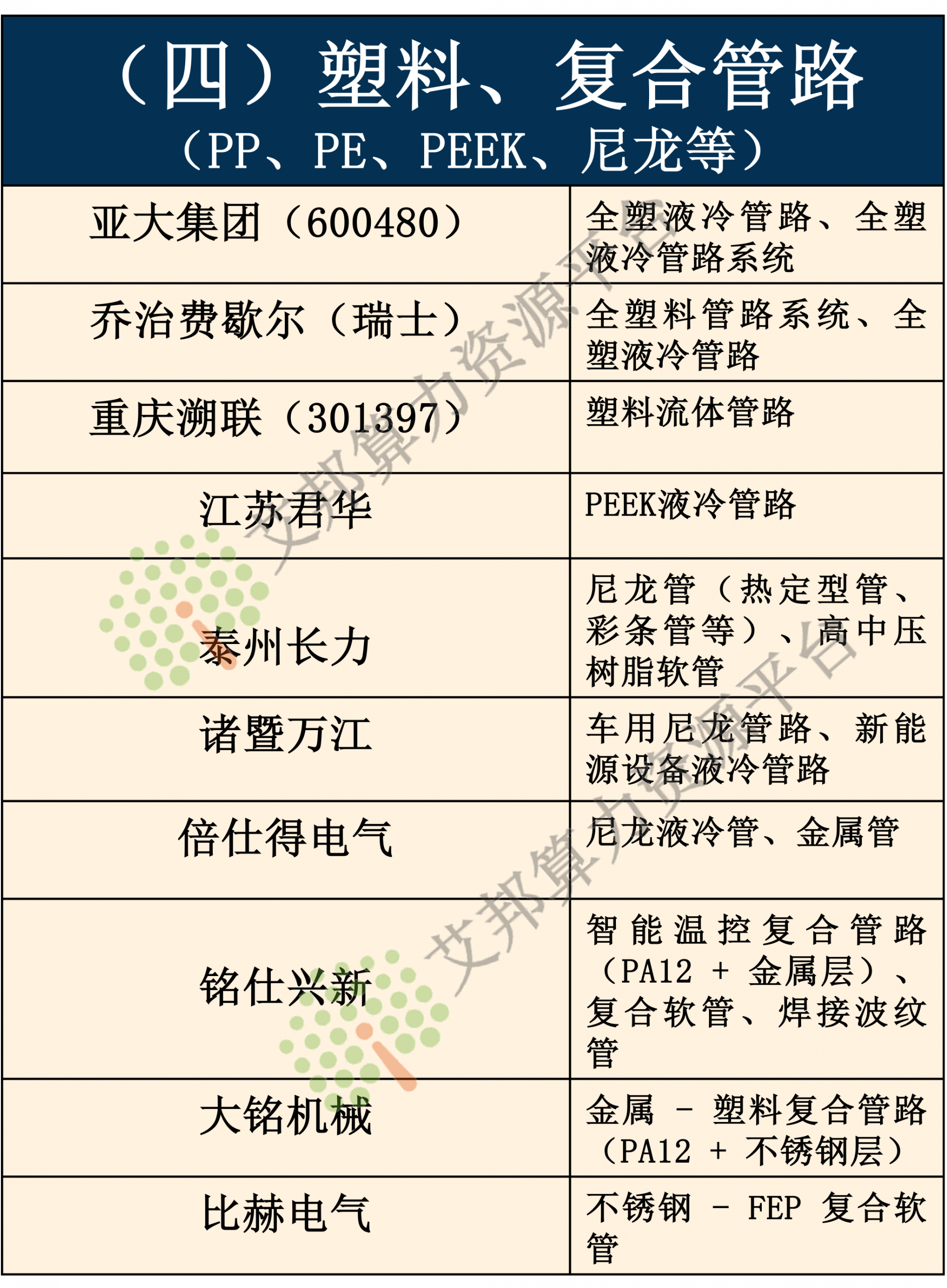 液冷新型材料:高导热金属材料(铜合金、铝合金、不锈钢等)绝缘材料、密封材料、塑料材料、橡胶材料、陶瓷基板及导热相变材料等材料厂商