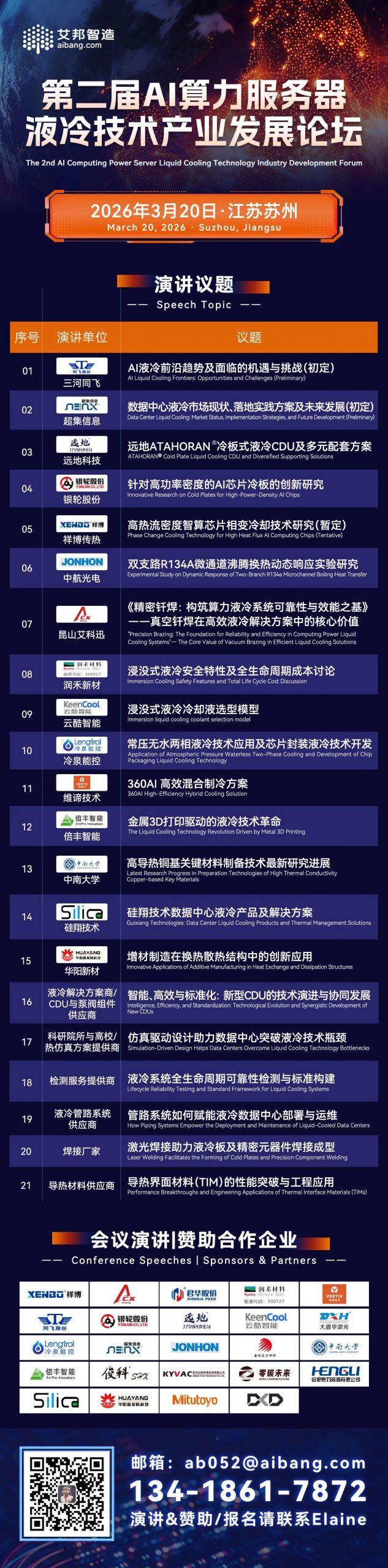艾邦建有服务器液冷散热交流群,聚焦服务器液冷技术前沿,涵盖冷板/浸没/喷淋式方案设计、材料升级(耐腐蚀管路、密封件创新)、CDU运维与能效优化、政策标准解读(PUE、OCP规范)等。欢迎大家加入我们,共绘服务器液冷散热未来!