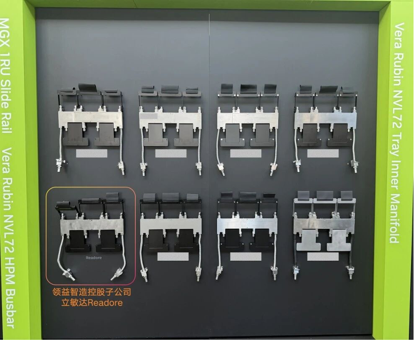 本次大会上,领益智造控股子公司立敏达(Readore)凭借硬核技术实力脱颖而出,作为英伟达vera Rubin架构Manifold(分水器)生态中的中国大陆供应商,携UQD/MQD快接头、Inner Manifold分水器等核心产品亮相,其产品深度融入Rubin全液冷循环系统,成为国产液冷企业切入全球顶尖算力供应链的重要标杆。