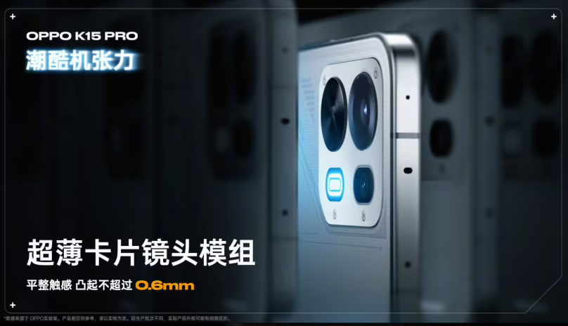 此外,OPPO K15 Pro系列还配备全面升级的岚影呼吸灯,支持多种颜色灯效自定义,并可联动手机状态与场景;超薄卡片镜头模组设计,风扇和镜头模组融合一体,凸起不到0.6mm,握持舒适不硌手。搭配旗舰同款的高强度晶盾玻璃和金属中框,兼顾了耐用性和高级质感。