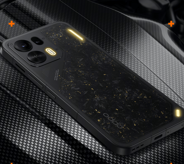 其中赛博光翼、光尘粉、起源灰配色后盖材质为复合板材,金色传说配色则行业首发航天级锻造碳工艺,真实碳纤维随机排列,闪光 PET 金箔手工点缀,每一款都独一无二。